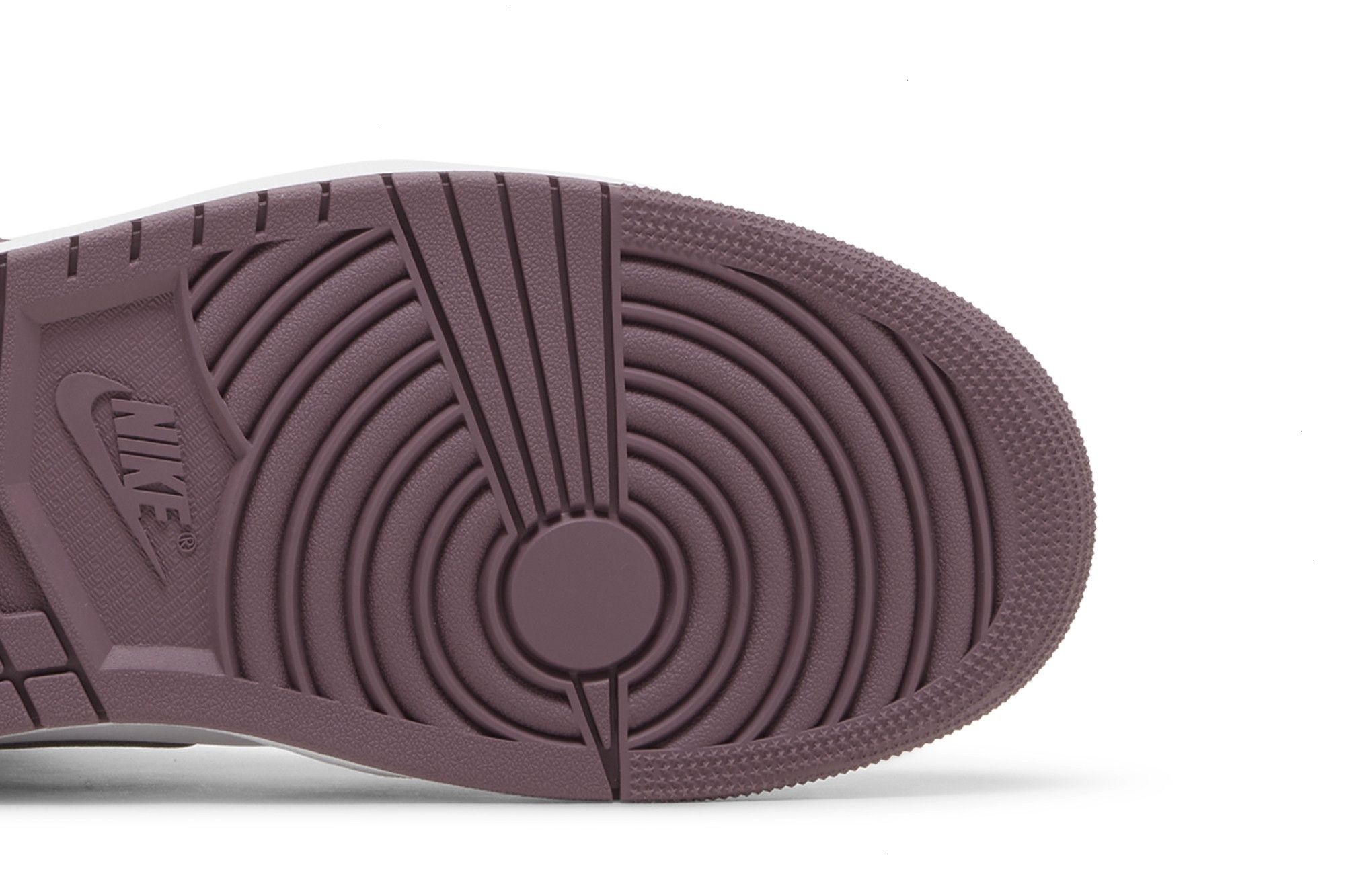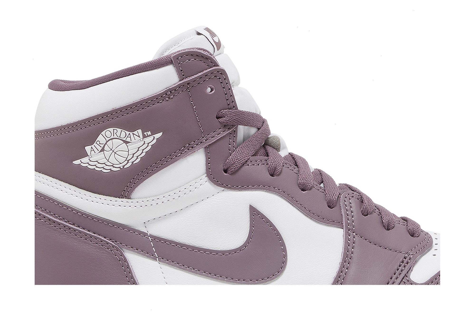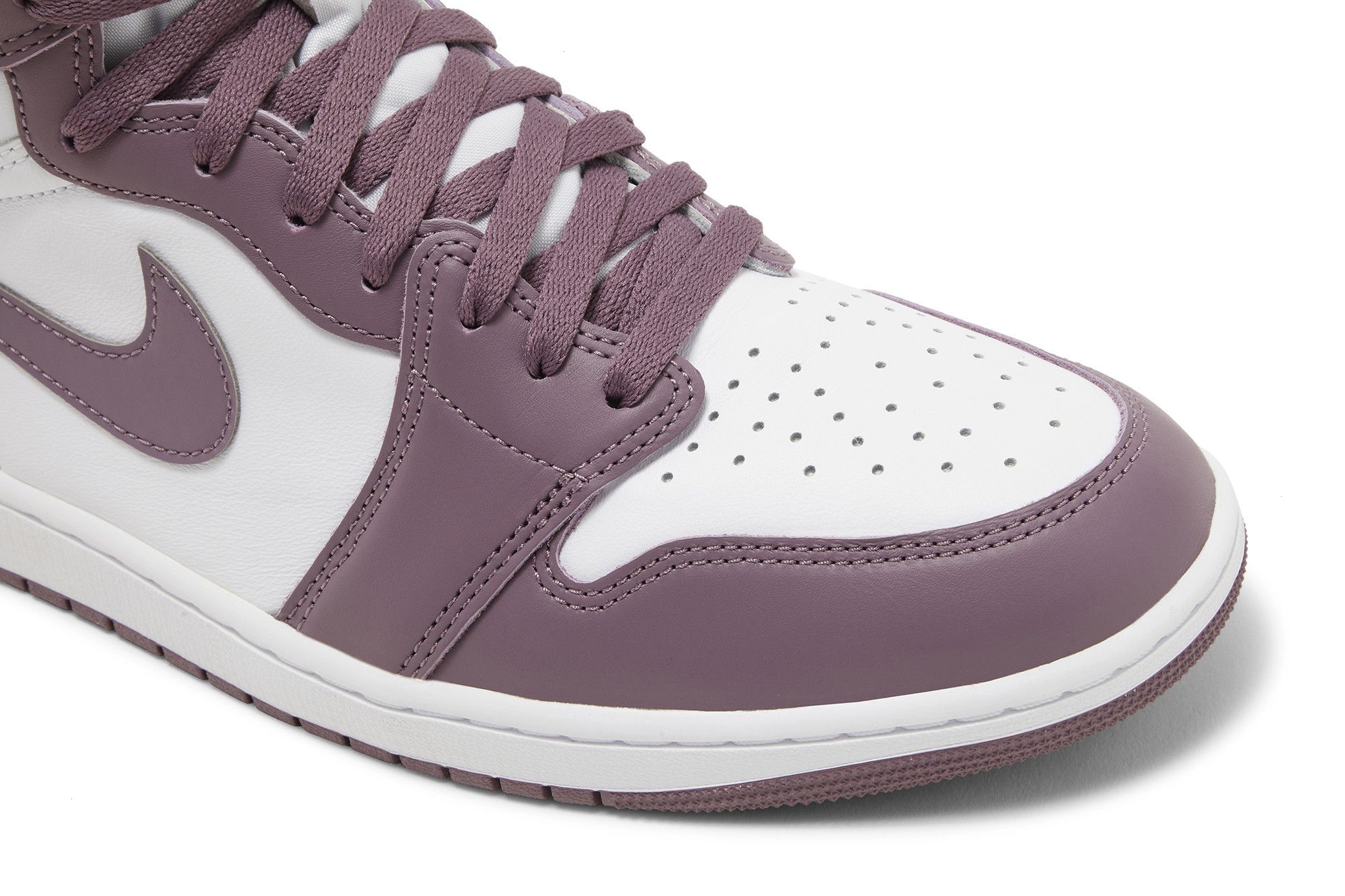 The Air Jordan 1 Retro High OG ‘Mauve’ sports a leather upper in white, highlighted by forefoot and heel overlays in a light violet hue. The pastel color is repeated on the signature Swoosh and woven Nike tongue tag. The high-top is mounted on durable cupsole construction, highlighted by a classic white midsole fitted with encapsulated Air-sole cushioning. A mauve-colored rubber outsole provides grippy traction underfoot.