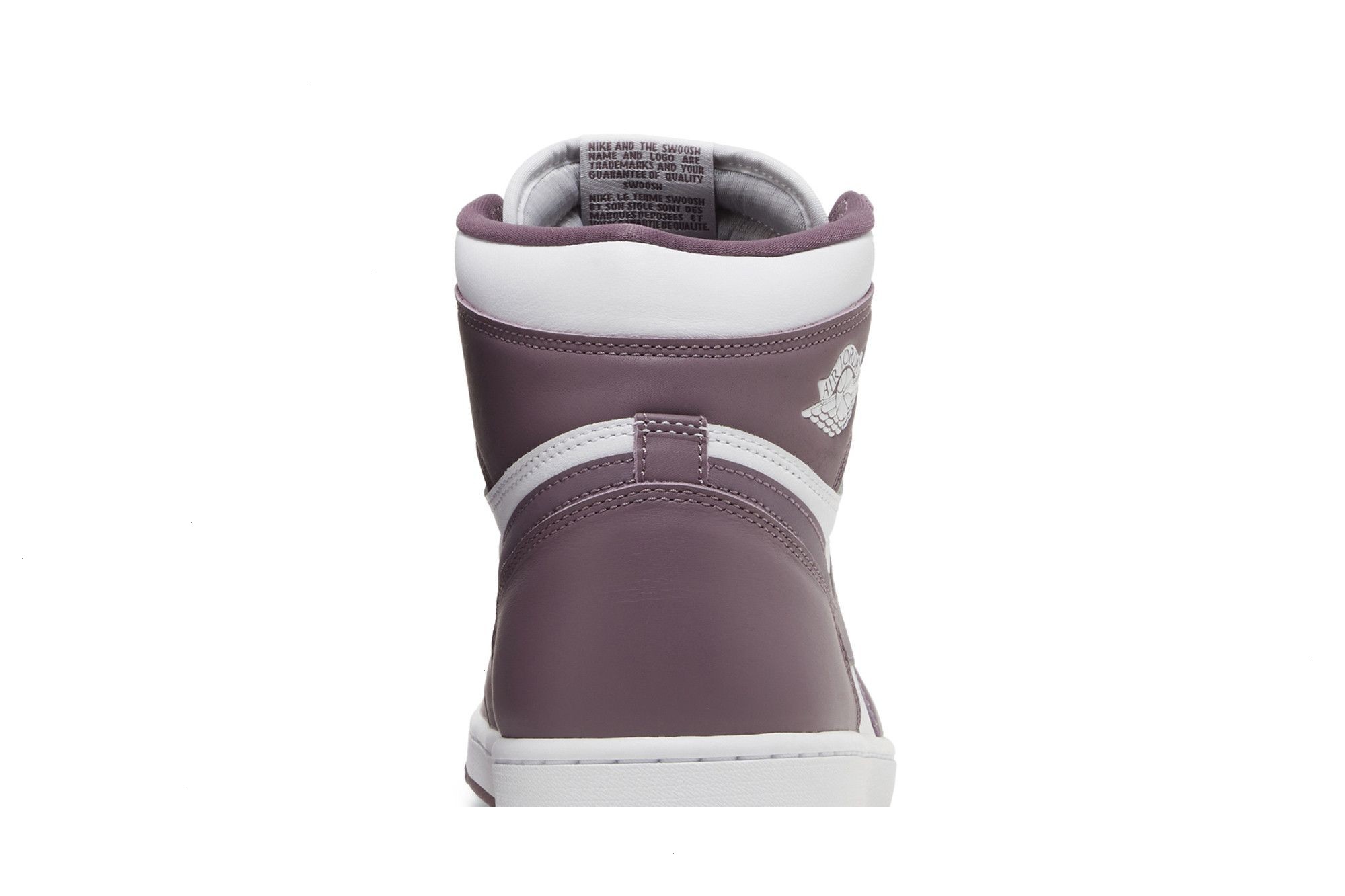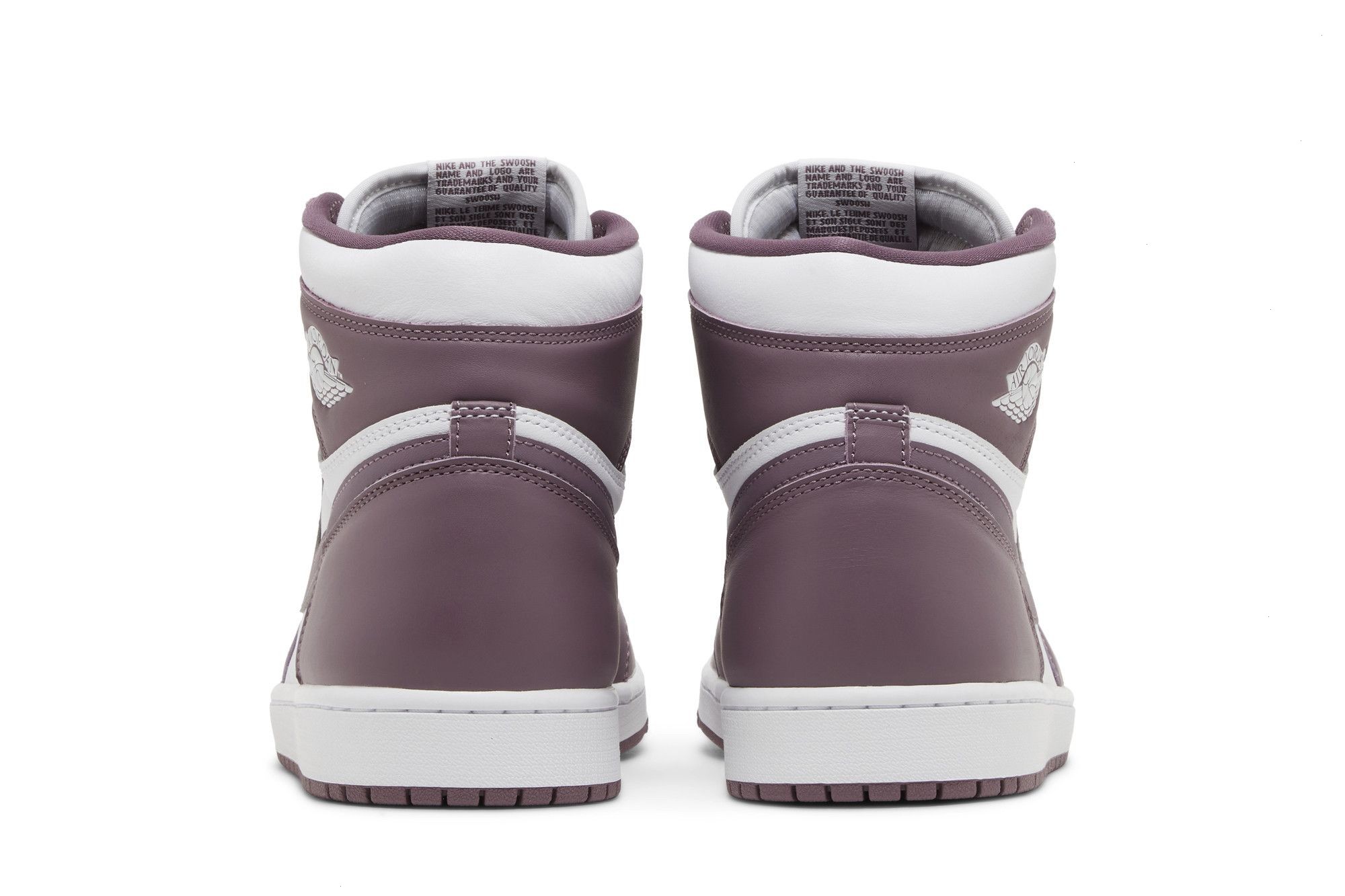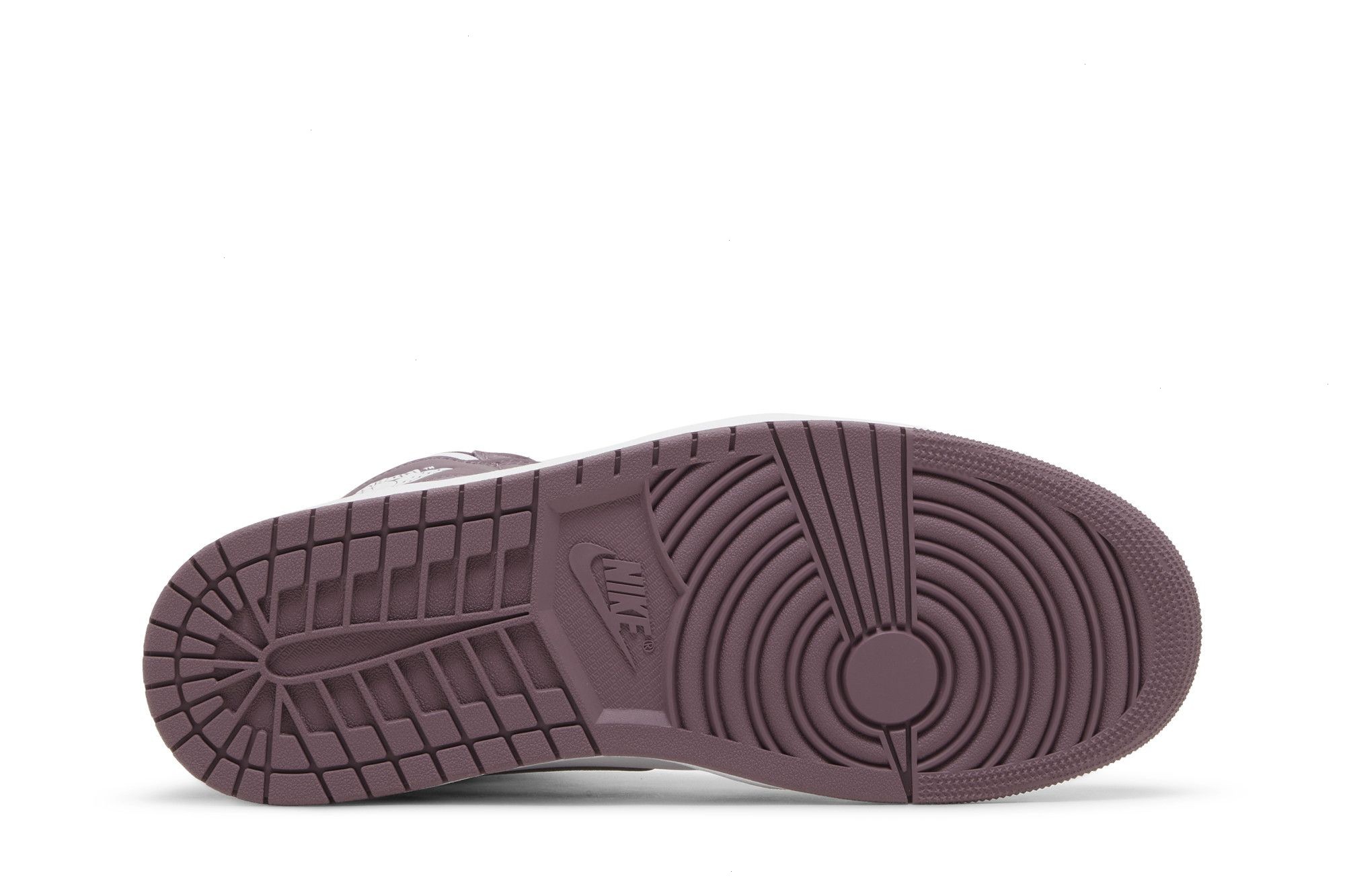 The Air Jordan 1 Retro High OG ‘Mauve’ sports a leather upper in white, highlighted by forefoot and heel overlays in a light violet hue. The pastel color is repeated on the signature Swoosh and woven Nike tongue tag. The high-top is mounted on durable cupsole construction, highlighted by a classic white midsole fitted with encapsulated Air-sole cushioning. A mauve-colored rubber outsole provides grippy traction underfoot.