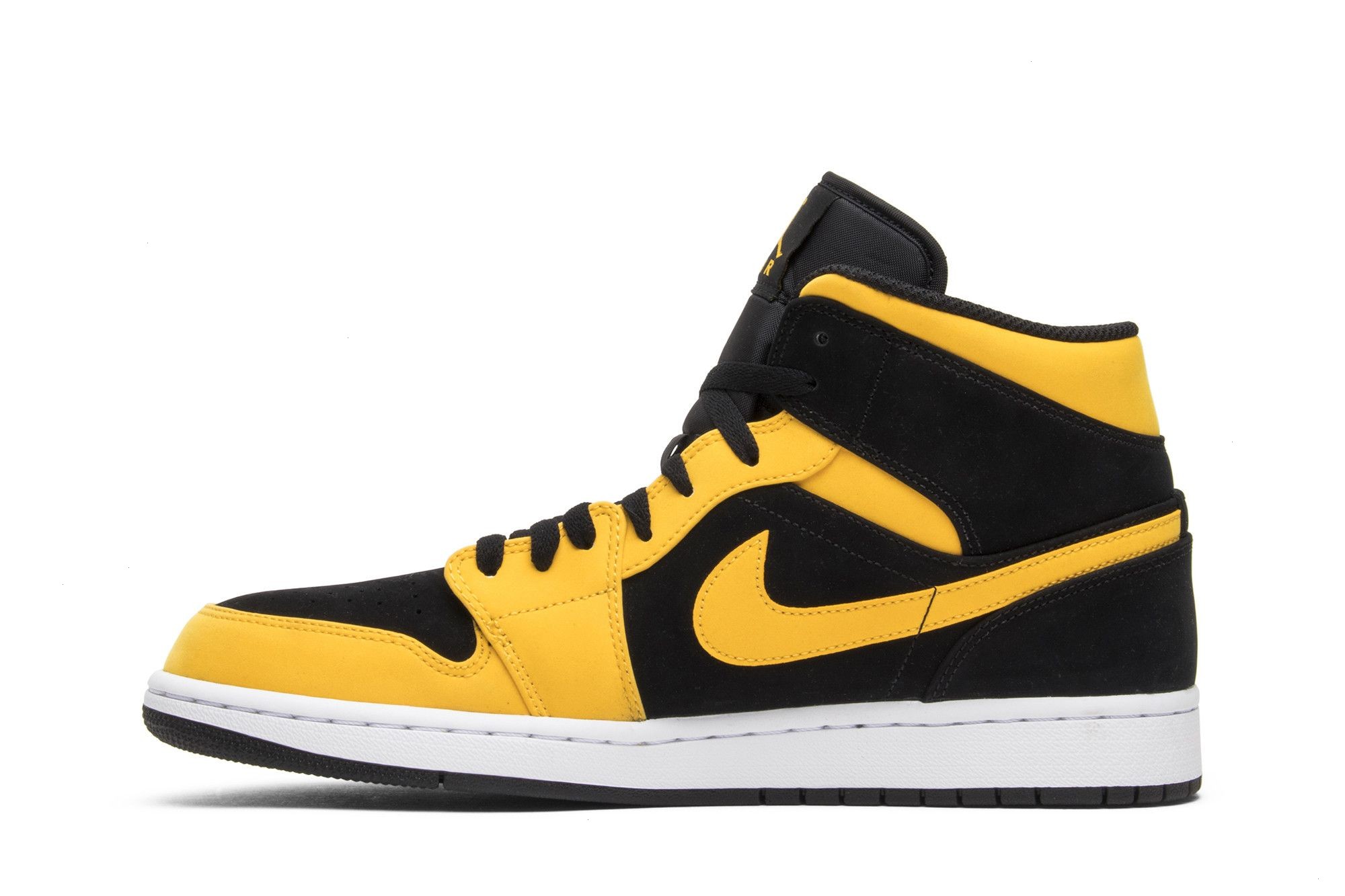 The Air Jordan 1 Mid ‘New Love’ dropped in 2007 as one half of the ‘Old Love/New Love’ pack. To mark the 10 year anniversary of the ‘New Love’, Jordan Brand retroed the mid-cut silhouette in its original color-blocking and in this reverse version. The ‘Reverse New Love’ features a black heel, side panel and forefoot; with yellow along the collar and toebox; flipping the scheme of the ‘New Love’. Unlike the 2007 models, the Air Jordan ‘Wings’ logo is printed on the ankle collar, not stitched.