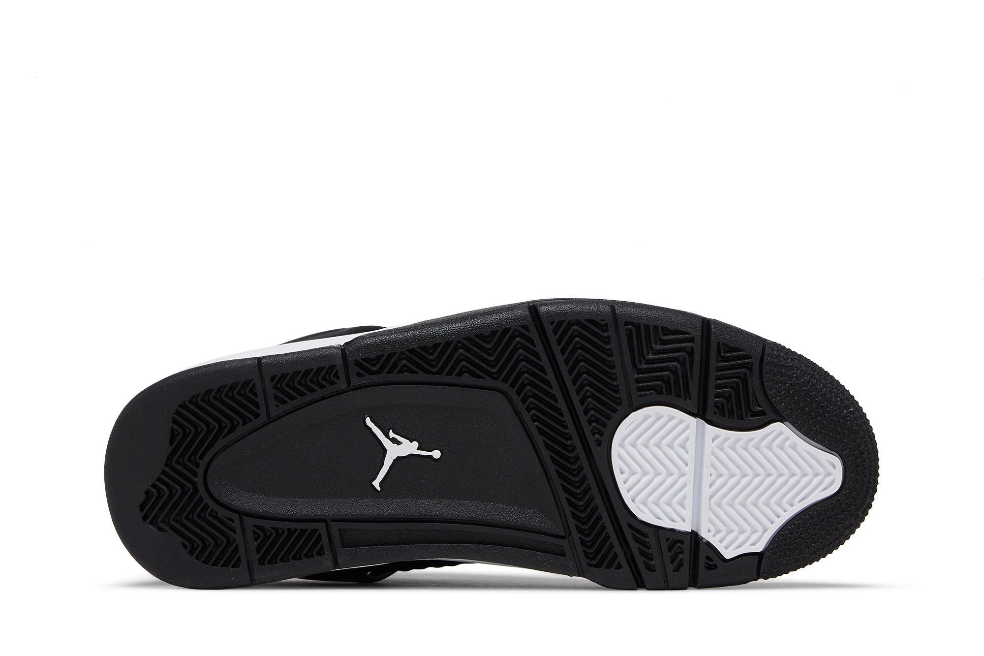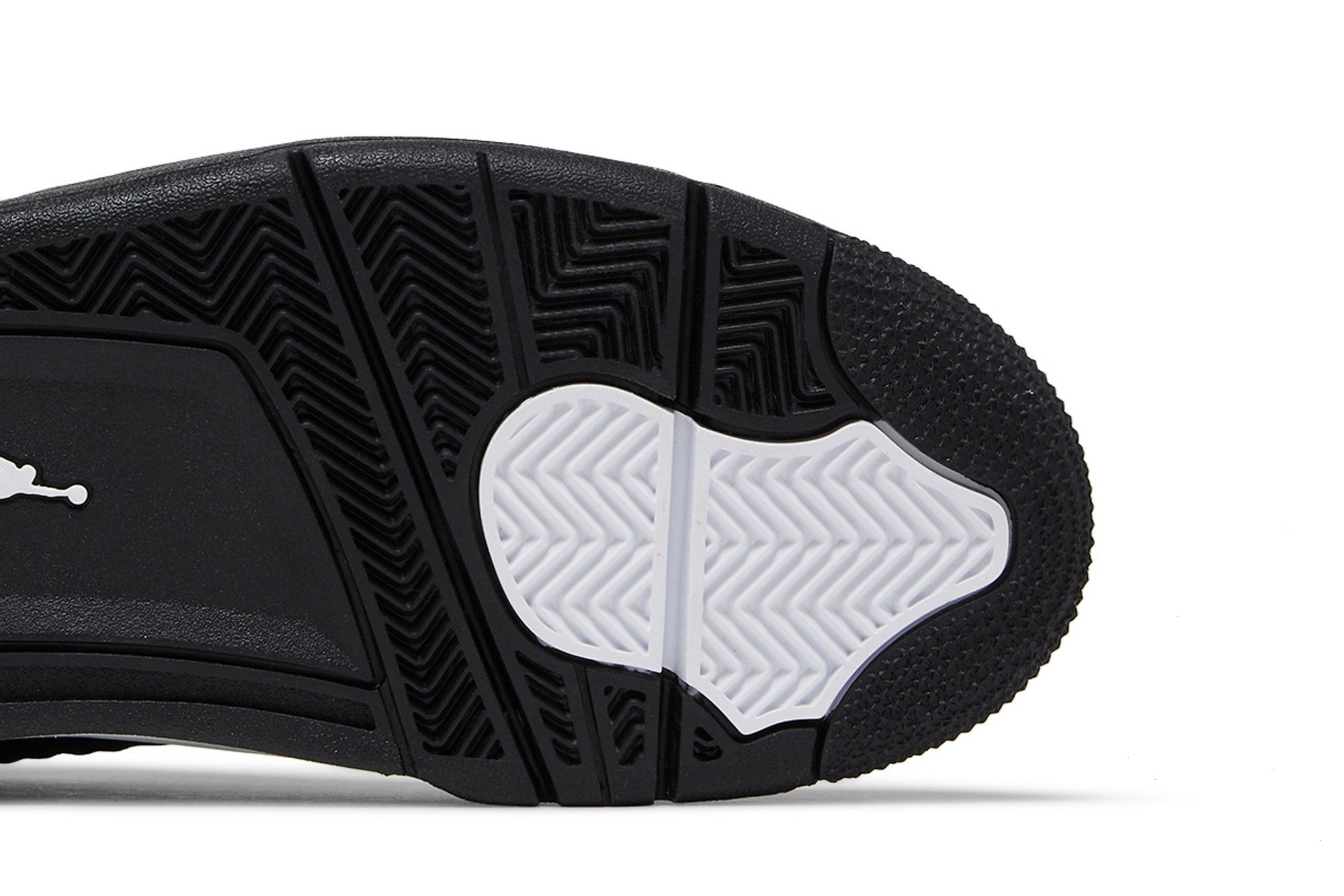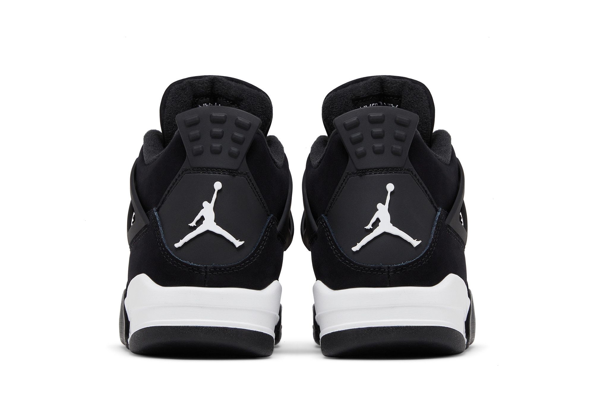 Built for big kids, the Air Jordan 4 Retro GS ‘White Thunder’ showcases color blocking that similar to the original ‘Thunder’ release from 2006. The classic silhouette sports a black nubuck upper with contrasting white accents on the mesh quarter panel, overlaid with black netting, and molded TPU eyelets. White Jumpman branding appears on the woven tongue tag and back heel. The sneaker rides atop a white polyurethane midsole with visible Air-sole cushioning.
