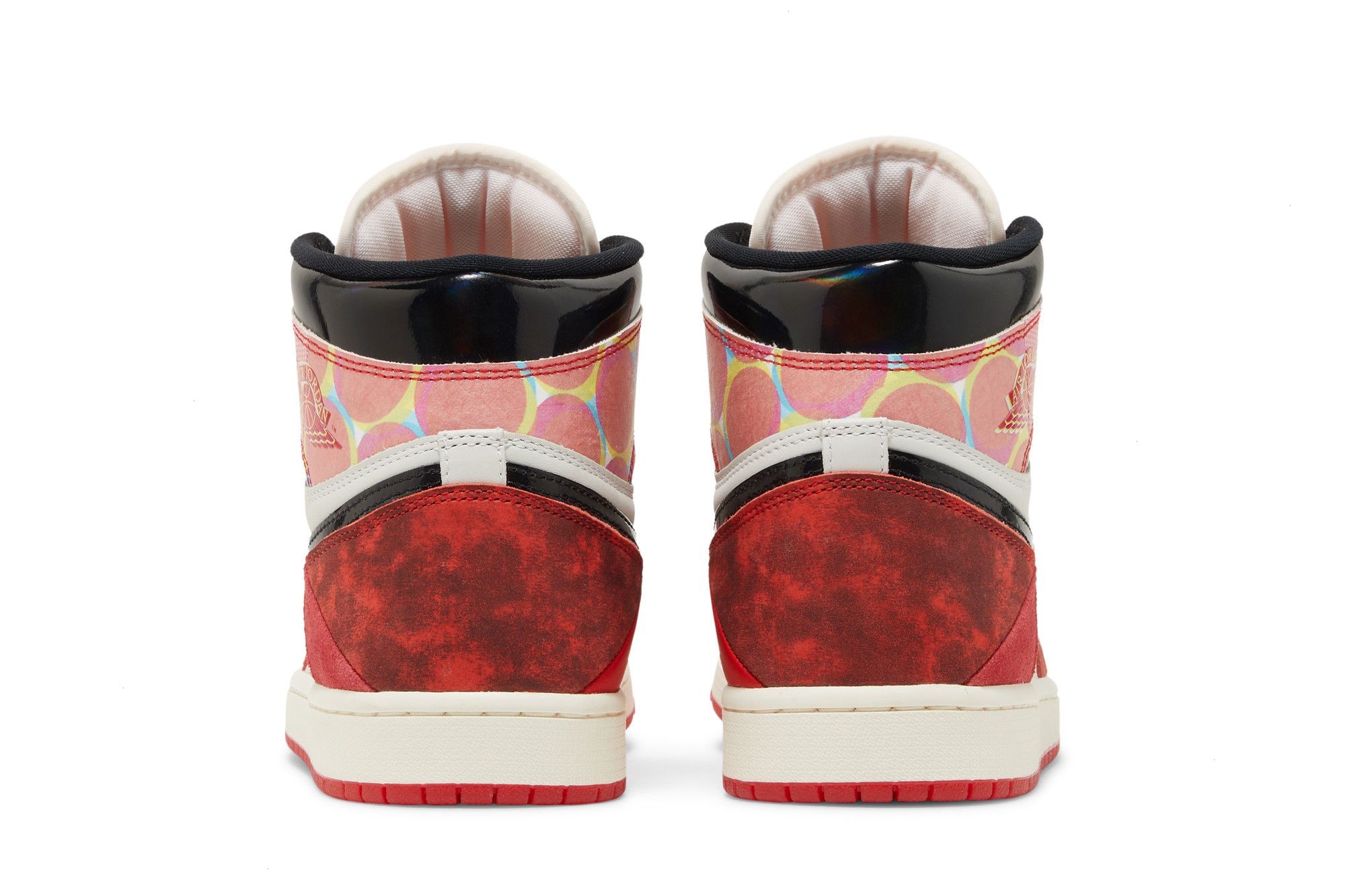 The Marvel x Air Jordan 1 Retro High OG ‘Next Chapter’ delivers a collaborative colorway tied to the animated film ‘Spider-Man: Across the Spider-Verse.’ A play on the original ‘Chicago’ colorway, this reimagined take on the sneaker icon features a white leather upper with black patent leather on the collar and Swoosh. Scarlet overlays are composed of a patchwork mix of different textures and prints — a pieced-together design that nods to the multidimensional Spiderman universe. A retro Wings logo is stamped on the lateral collar flap, while a woven Nike tag decorates the nylon tongue. The high-top rides on a rubber cupsole that pairs aged sidewalls with a crimson semi-translucent rubber outsole.